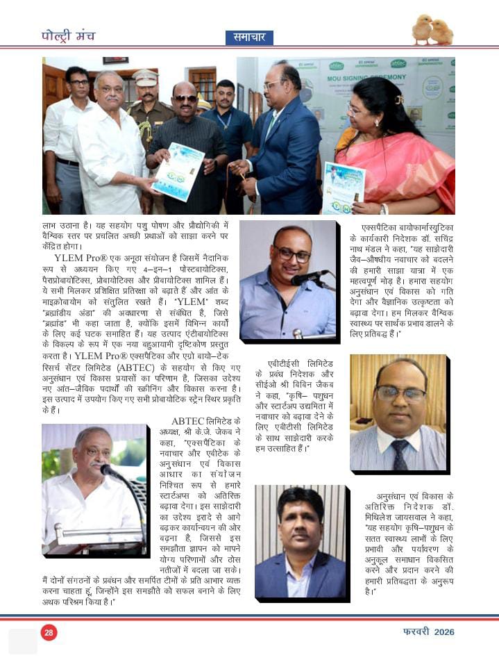 INDIAN POULTRY REVIEW MAGAZINE (FEBURARY 26 ISSUE ) MENTIONED LAUNCH OF YLEM PRO/ MOU SIGNING CEREMONY