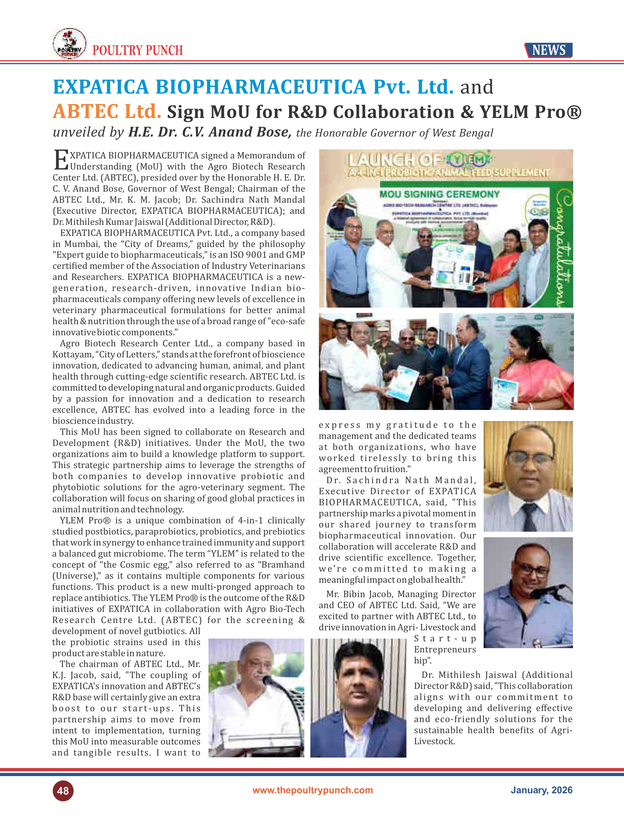 POULTRY PUNCH MAGAZINE (JANUARY 26 ISSUE ) MENTIONED LAUNCH OF YLEM PRO/ MOU SIGNING CEREMONY