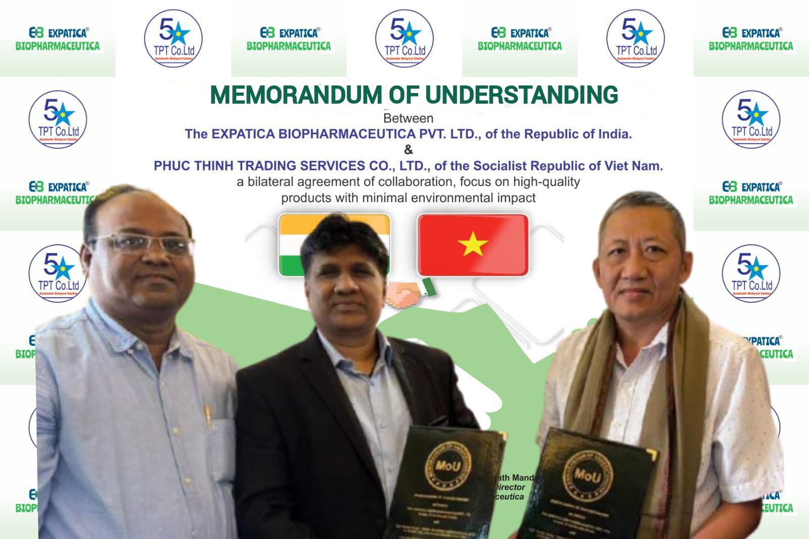 We are delighted to sign this historic Memorandum of Understanding (MOU) between The EXPATICA BIOPHARMACEUTICA PVT. LTD. of The Republic of India and The THIEN PHUC THINH TRADING SERVICES CO. LTD., of The Socialist Republic of Viet Nam.