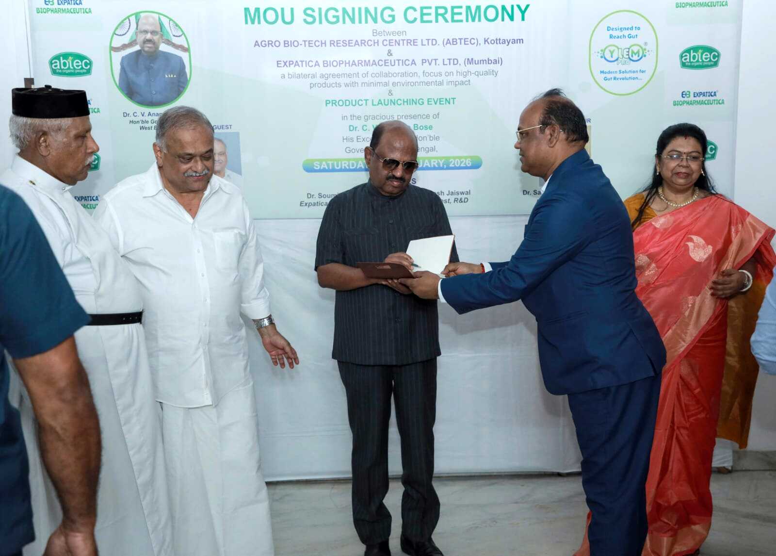 EXPATICA BIOPHARMACEUTICA Pvt. Ltd. and ABTEC Ltd. Sign MoU for R&D Collaboration & YELM Pro® unveiled by H.E. Dr. C.V. Anand Bose, the Honorable Governor of West Bengal